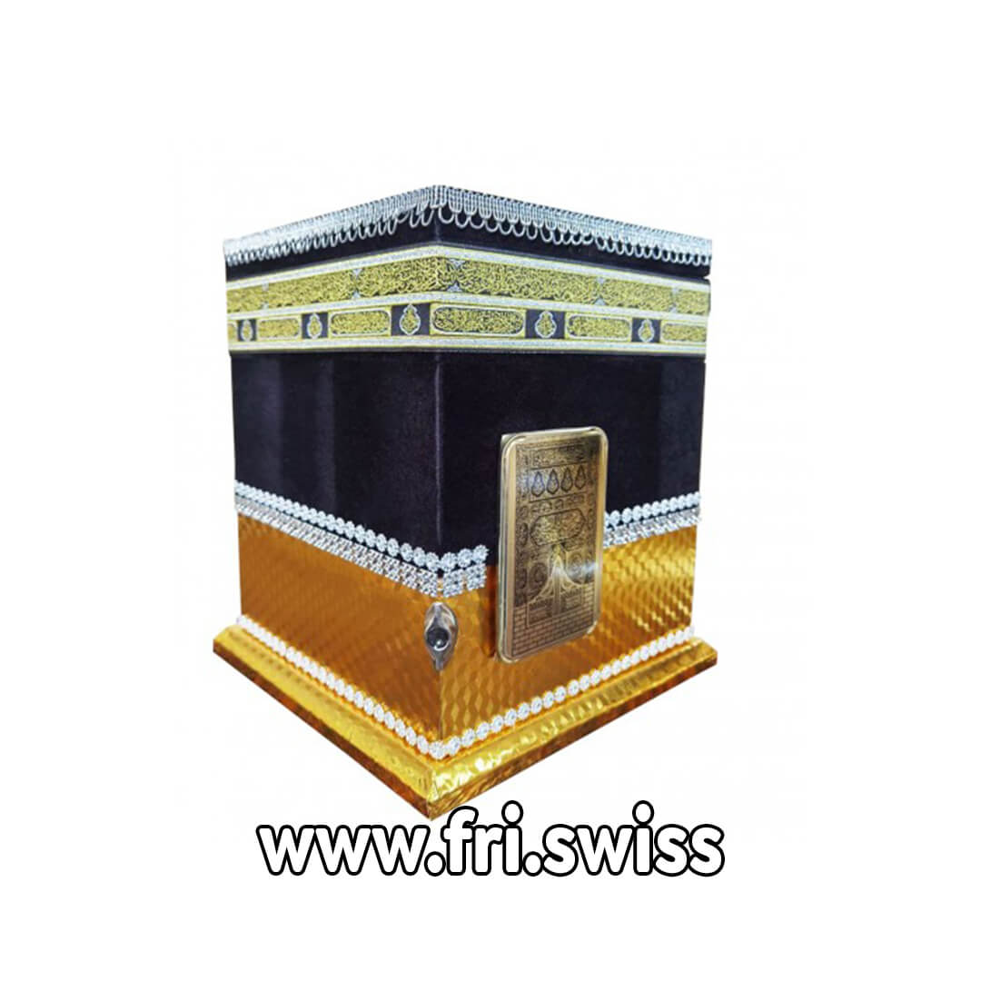 Kuti me dizajnin e Qabes, me tespih, Kuran Arabisht dhe sexhade – Box mit dem Design der Kaaba, mit tespi, arabischem Koran und Gebetesteppich