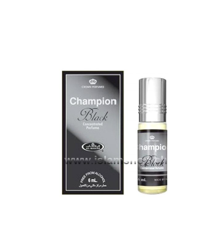 Parfum Champion Black 6 ml, prodhuar nga firma e njohur Al Rehab në Emiratet e Bashkuara Arabe. Për meshkuj dhe femra, pa alkohol.